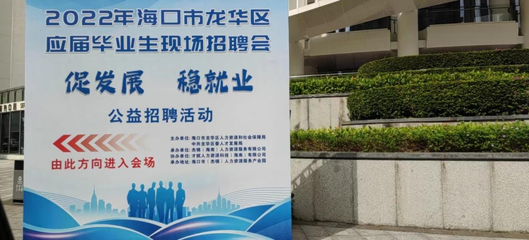 為深入貫徹省委、省政府穩(wěn)就業(yè)保就業(yè)決策部署,幫助用工企業(yè)更好的招納人才,讓廣大高校畢業(yè)生群體找到理想的就業(yè)崗位。11月26日上午9點,由??谑旋埲A區(qū)人力資源和社會保障局、中共龍華區(qū)人才發(fā)展局主辦,由杰錦(海南)人力資源服務有限公司承辦、由才賦人力資源科技(海南)有限公司協(xié)辦,2022年龍華區(qū)應屆畢業(yè)生招聘會在??跒逞菟囍行奈鞲綐呛?谑校ń苠\)人力資源服務產(chǎn)業(yè)園一樓拉開序幕。