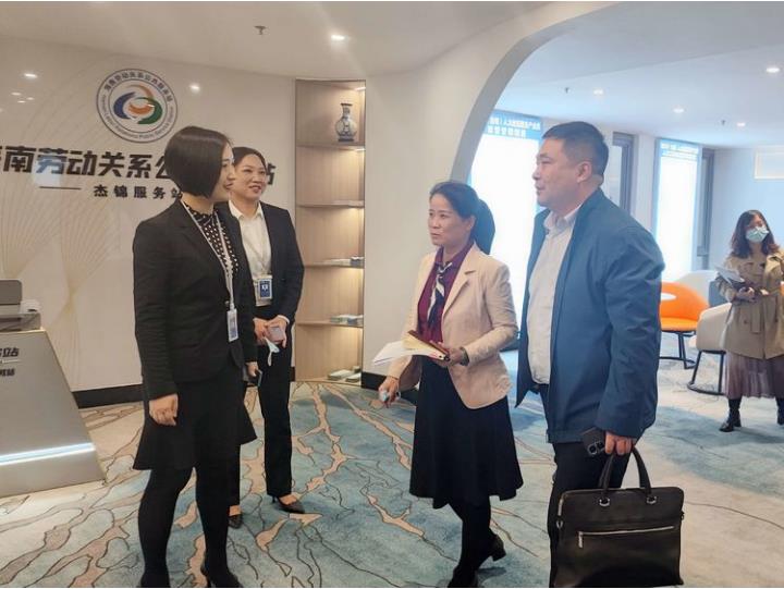 市人社局就業(yè)促進科負責人劉剛和龍華區(qū)人社局局長陳明曉攜一行人先實地考察了??冢ń苠\)人力資源服務產(chǎn)業(yè)園和海口杰錦就業(yè)驛站,了解其規(guī)模布局、功能服務等情況。期間,還與海南就業(yè)驛站——海口杰錦人才就業(yè)服務站的工作人員進行交談,了解2月10日在園區(qū)舉辦的“春風行動”招聘會的具體情況以及招聘會的成效。