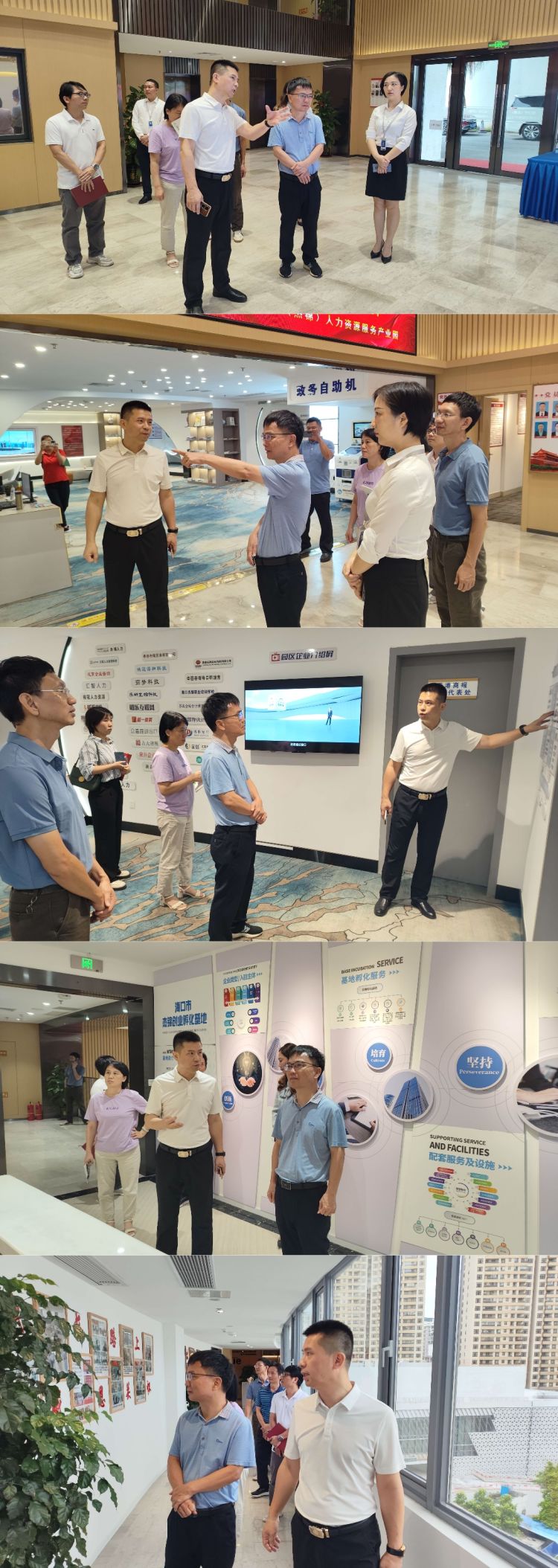 李美健副主任一行在園區(qū)總經(jīng)理劉昕暉的指引下,對??谑校ń苠\)人力資源服務(wù)產(chǎn)業(yè)園內(nèi)各個區(qū)域、服務(wù)板塊進行了參觀,詳細了解了園區(qū)內(nèi)現(xiàn)有的龍華區(qū)黨群服務(wù)中心及人才工作站、海南就業(yè)驛站——海口人才就業(yè)服務(wù)站、海南勞動關(guān)系公共服務(wù)站—杰錦服務(wù)站、??诮苠\創(chuàng)業(yè)孵化基地、就業(yè)見習(xí)基地等人才服務(wù)平臺運營建設(shè)情況。