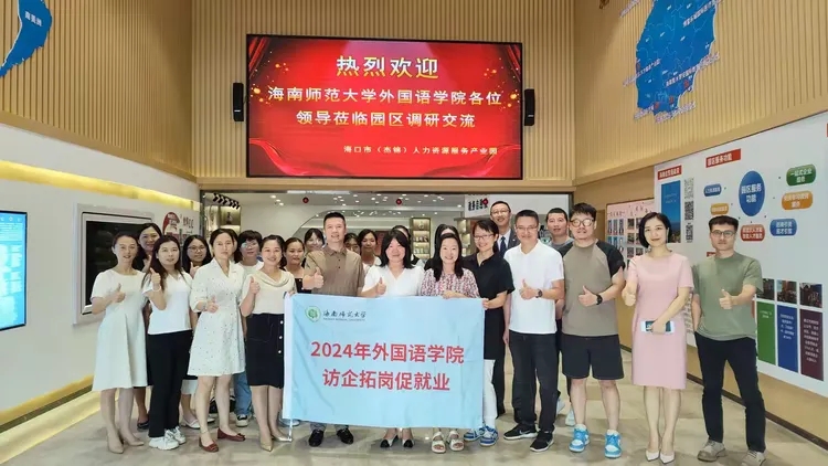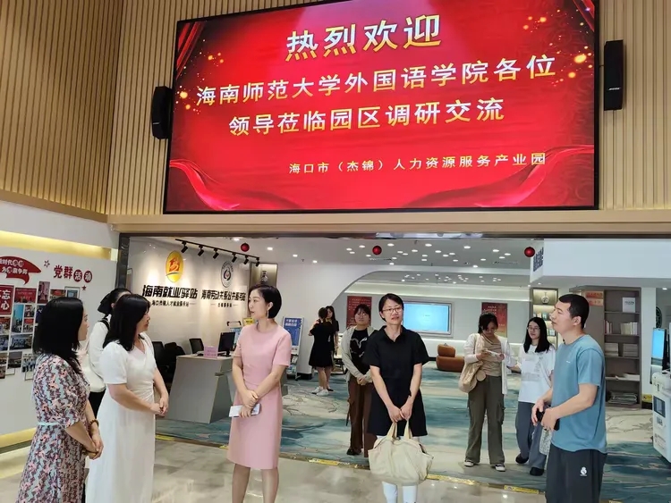 為貫徹落實(shí)“訪企拓崗”促就業(yè)專(zhuān)項(xiàng)行動(dòng)工作部署,尋求校企合作機(jī)會(huì),拓寬畢業(yè)生就業(yè)渠道,促進(jìn)2024年高校畢業(yè)生高質(zhì)量就業(yè),同時(shí)進(jìn)一步發(fā)展實(shí)習(xí)、就業(yè)基地,5月29日上午,海南師范大學(xué)外國(guó)語(yǔ)學(xué)院黨委副書(shū)記楊白全率隊(duì),商務(wù)英語(yǔ)系主任游艷、日語(yǔ)系主任汪宇、就業(yè)負(fù)責(zé)人鐘亨任、朱大珩一行5人,以及英語(yǔ)系應(yīng)屆畢業(yè)生7人,到海口市(杰錦)人力資源服務(wù)產(chǎn)業(yè)園進(jìn)行調(diào)研交流。