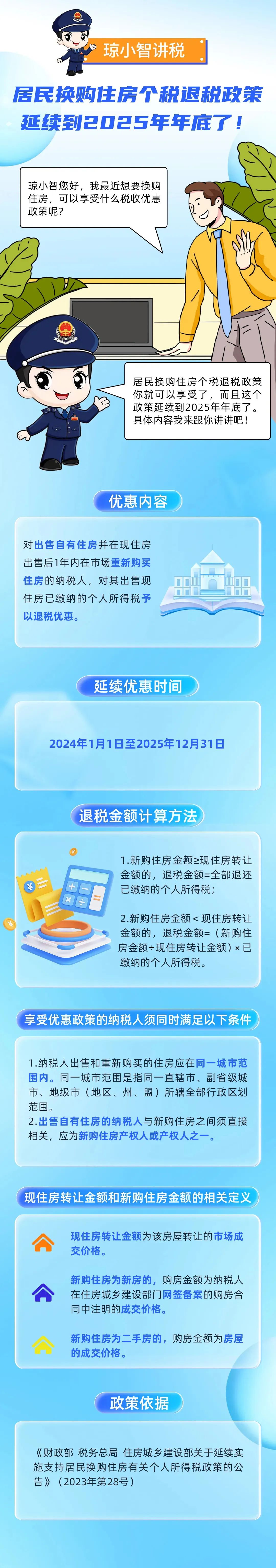 居民換購住房個(gè)稅退稅政策延續(xù)到2025年年底了!